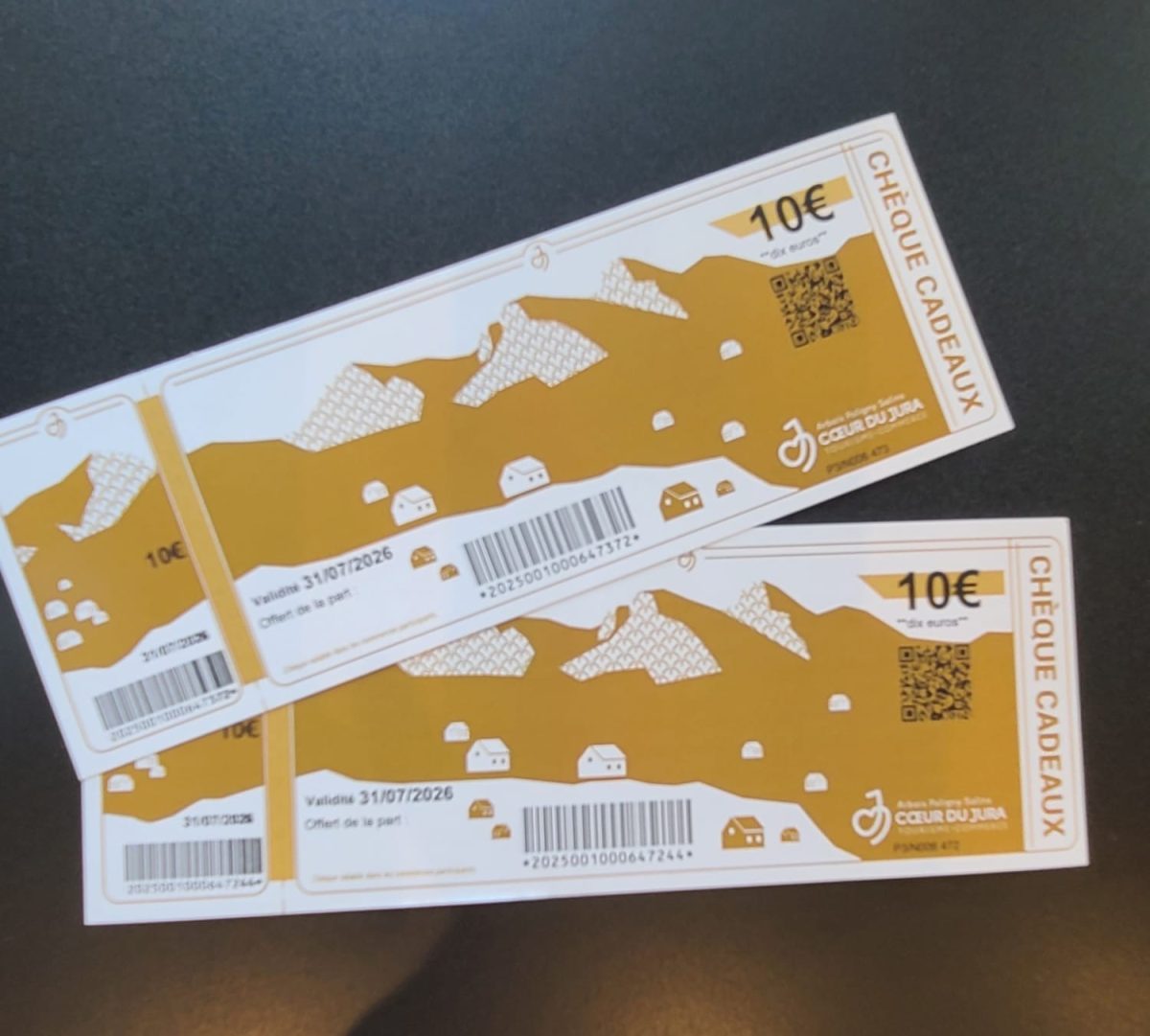 Ces chèques cadeaux sont valables chez de nombreux partenaires du Cœur du Jura et permettent d’offrir la liberté de choisir, tout en soutenant nos artisans et commerçants locaux.