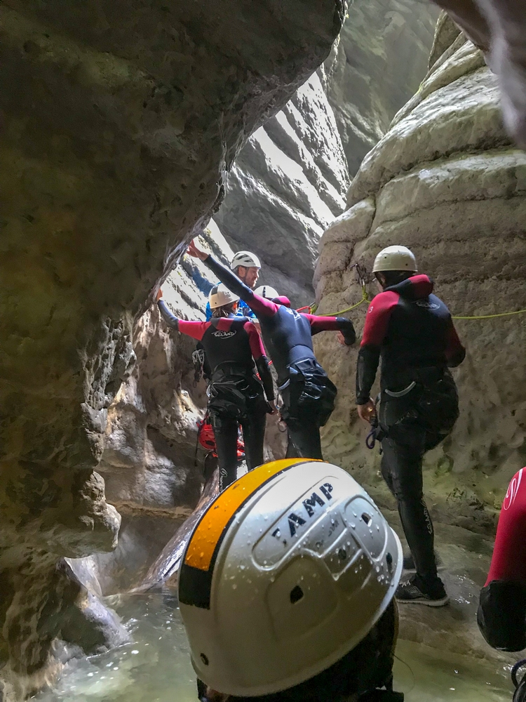 Afin d’assurer un certain confort à l’activité, limiter les temps d’attentes et garantir des activités en toute sécurité, nous limitons les groupes à 12 personnes pour les randonnées aquatiques, et 10 personnes pour les canyons.