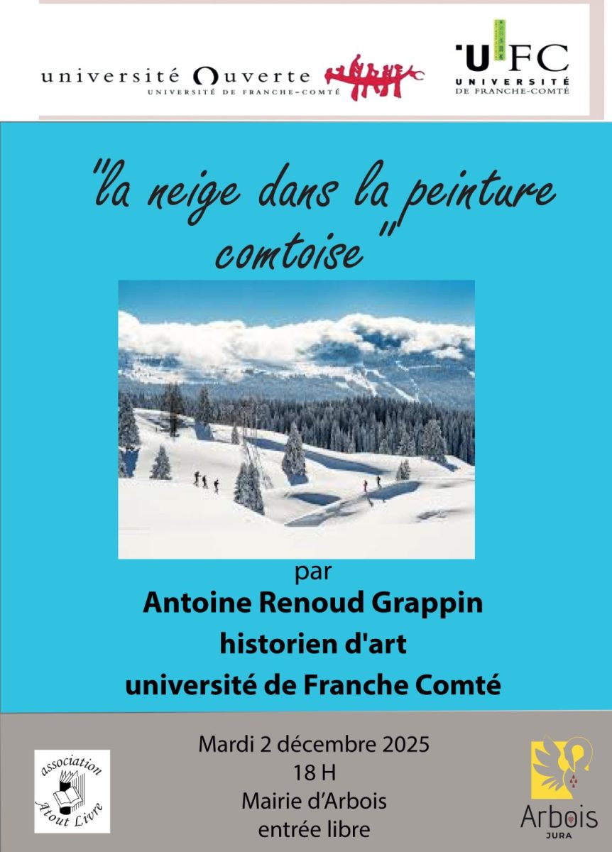 Dans le cadre du programme des Conférences de l’Université Ouverte, Antoine Renoud Grappin, historien d’art à l’Université de Franche-Comté vous propose une conférence sur « la neige dans la peinture comtoise »