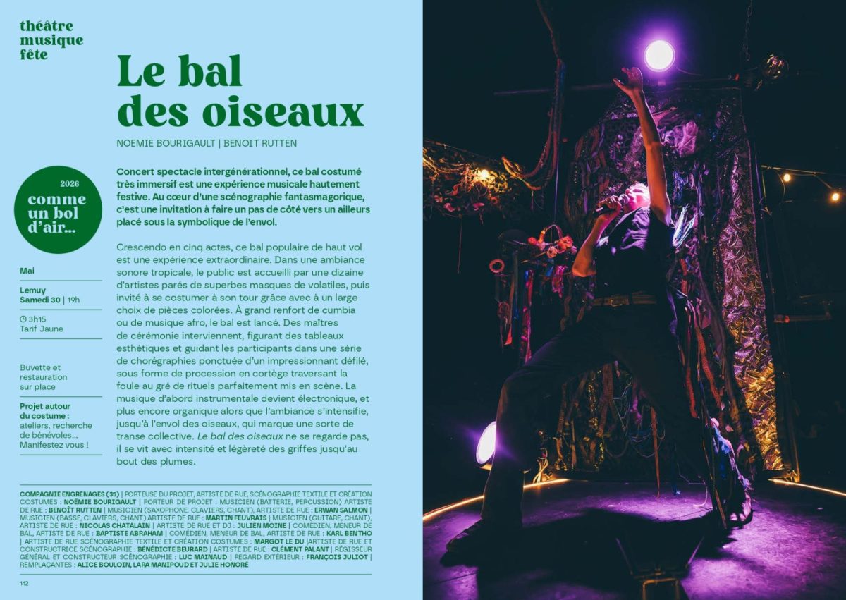 Concert spectacle intergénérationnel, ce bal costumé très immersif est une expérience musicale hautement festive. Au coeur d’une scénographie fantasmagorique, c’est une invitation à faire un pas de côté vers un ailleurs