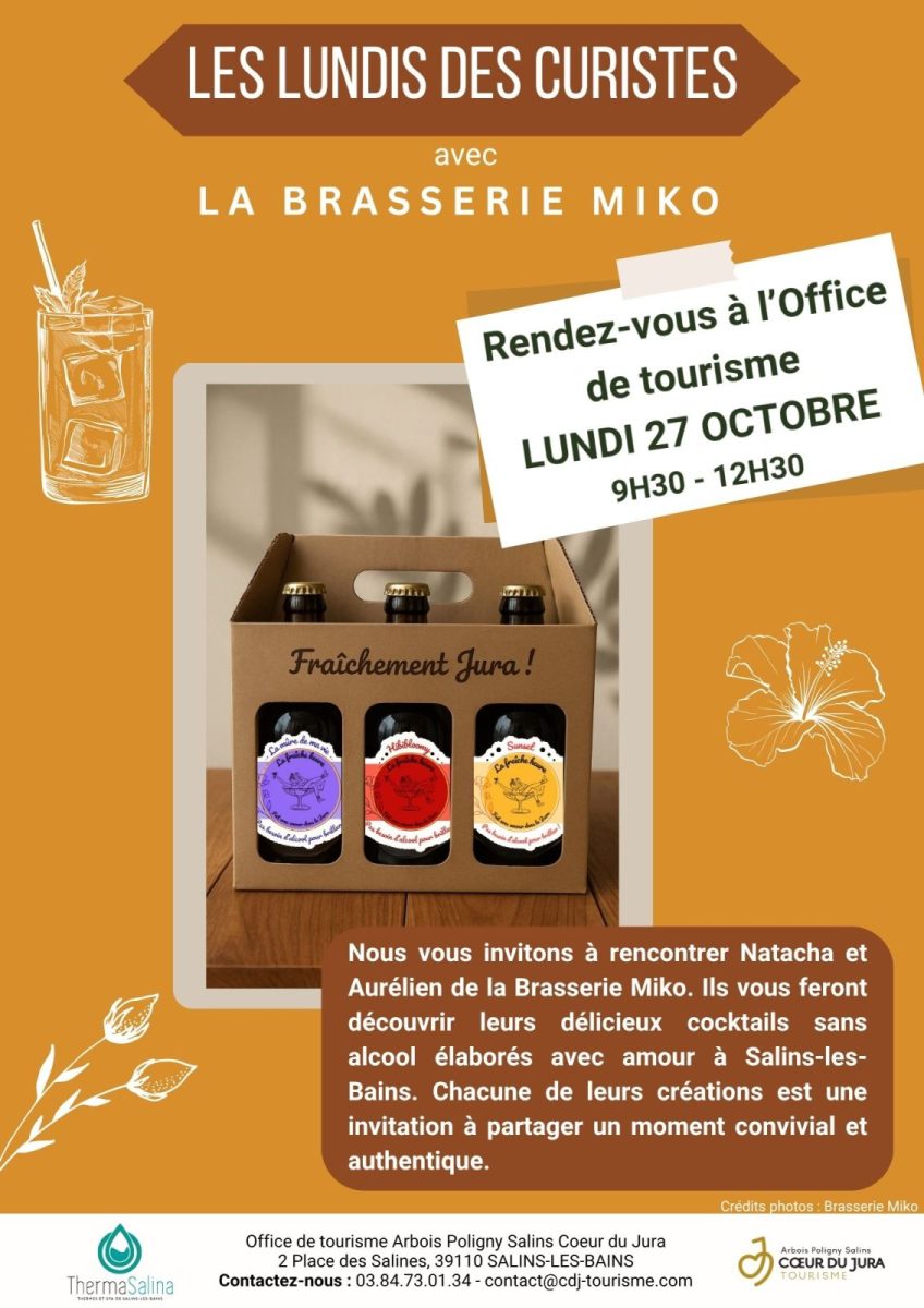 Le lundi 27 octobre vous rencontrerez Natacha et Aurélien de la Brasserie Miko. Ils vous feront découvrir leurs délicieux cocktails sans alcool élaborés avec amour à Salins-les-Bains. Chacune de leurs créations est une invitation à partager un moment convivial et authentique.