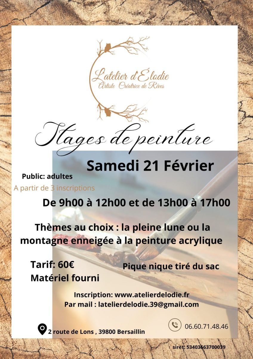 Thème au choix : la pleine lune ou la montagne enseignée à la peinture acrylique.