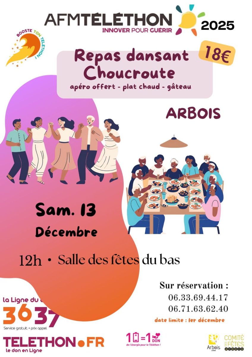 Téléthon 2025 à Arbois – Repas dansant choucroute !