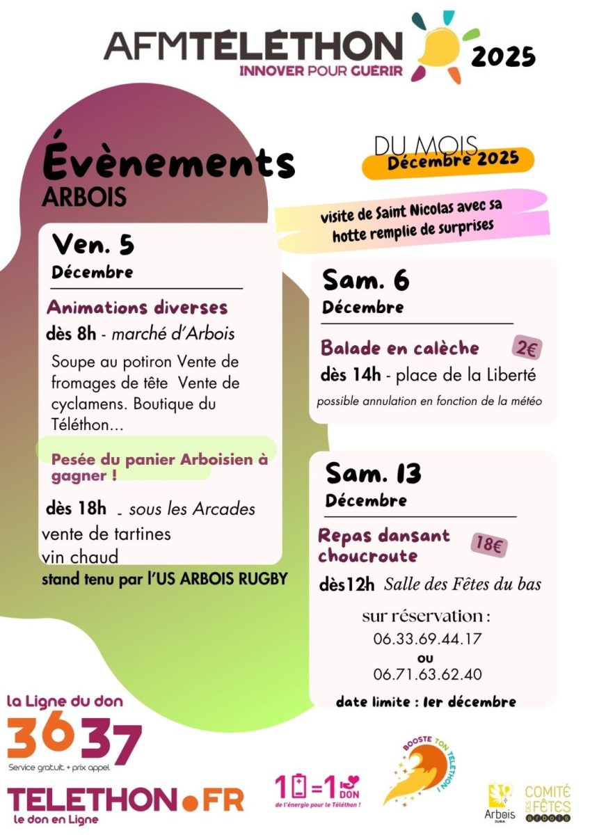 Le Comité des Fêtes d’Arbois vous donne rendez-vous pour un moment convivial et solidaire au profit du Téléthon