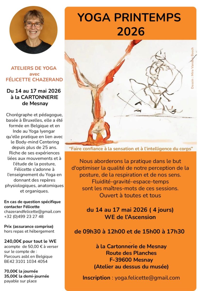Chorégraphe et pédagogue, basée à Bruxelles, elle a été formée en Belgique et en Inde au Yoga Iyengr qu'elle pratique en lien avec le Body-mind Centering depuis plus de 25 ans. Riche de ses expériences liées aux mouvements et à l'étude de la posture. Félicette s'adonne à l'enseignement du Yoga en donnant des repères physiologiques, anatomiques et organiques.