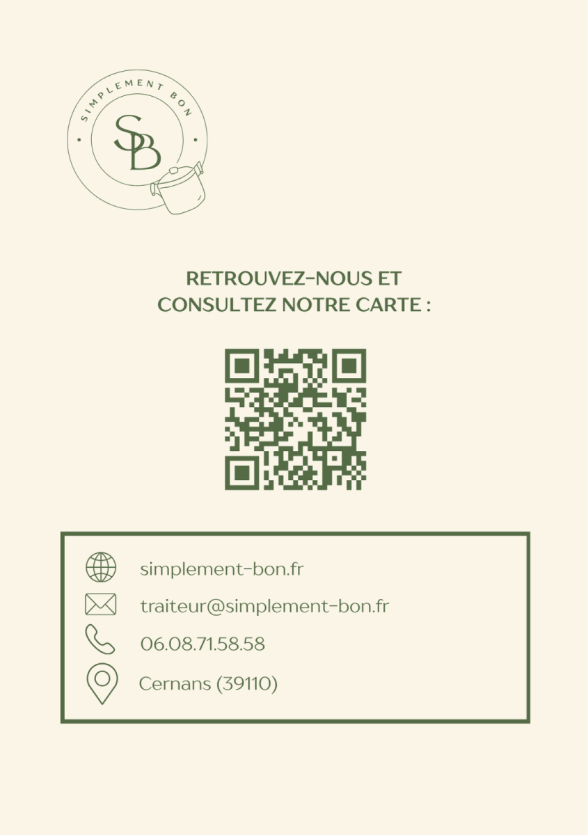 Chaque recette est élaborée à partir d'ingrédients frais et de saison, soigneusement sélectionnés pour leur qualité et leur goût. Que ce soit pour un repas de famille, une soirée entre amis ou un évènement particulier, nous vous garantissons une expérience culinaire alliant simplicité et gourmandise.