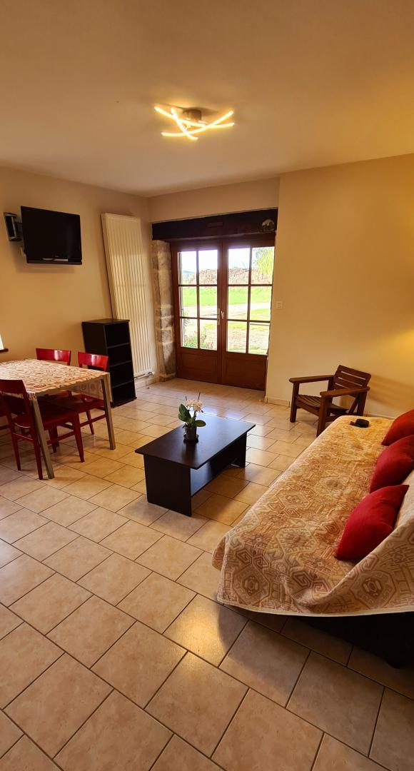 Maison mitoyenne indépendante de plain pied, située à 3 km de Poligny. Coin cuisine équipée, séjour-salon, TV écran plat, canapé convertible. CH1: 2 lits jumeaux de 80/200cm ou 1 lit 2 pl 160/200cm, salle d'eau, sèche linge. Terrain attenant semi clos, cour, salon de jardin, barbecue. Garage à disposition. Chauffage central. Charges comprises en juillet et août.