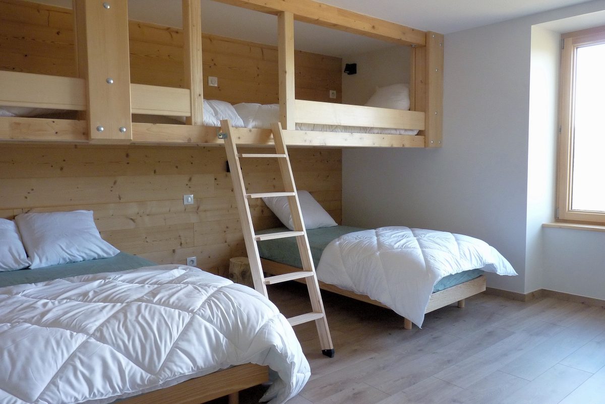 1 grande chambre-dortoir avec 3 lits en 90, 1 lit en 140 et 3 lits en 90 en mezzanine