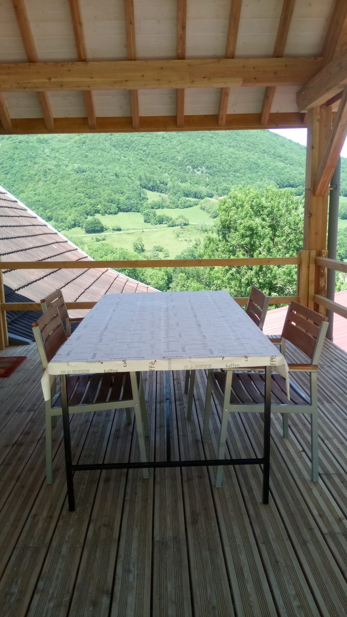 Lors des beaux jours, vous pourrez profiter de la terrasse abritée et du salon de jardin.