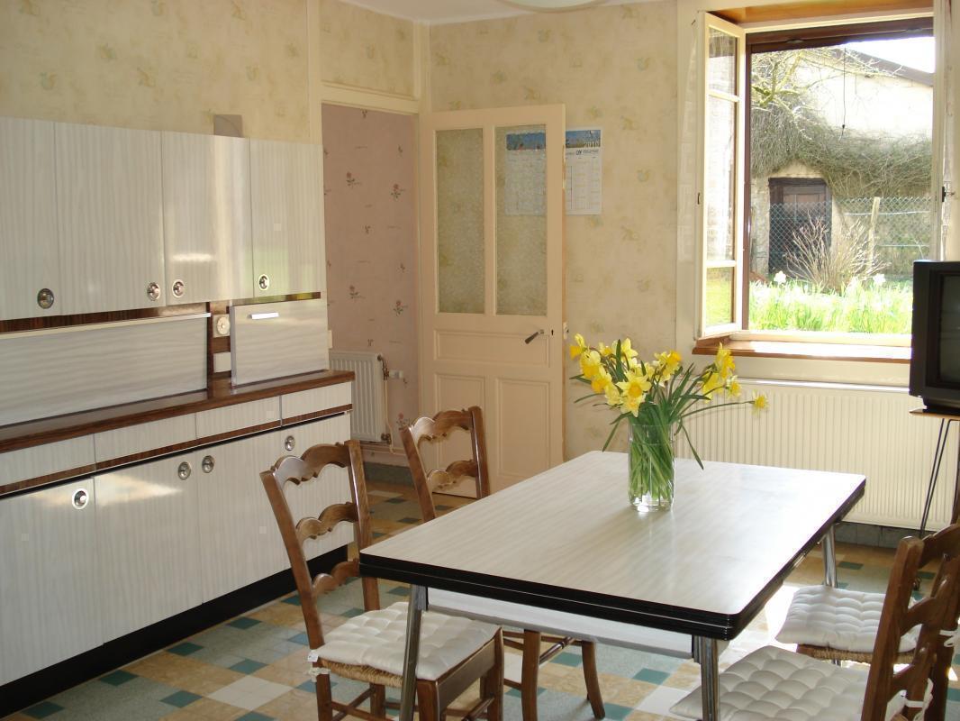 Maison indépendante au coeur d'un village situé sur les hauteurs, à 4 km de Poligny. Au RDC: cuisine avec micro-ondes (TV), congélateur, séjour-salon (TV), salle d'eau, WC séparé, à l'étage: ch1: 1 lit 2 pl, 1 lit bébé, ch2: 2 lits 1 pl (dont 1 lit de 120 cm) + 1 lit 2 pl, chauffage central, cour, jardin clos (7 ares) avec arbres fruitiers, salon de jardin, barbecue, garage. Toutes charges comprises. Location au week end possible (tarif : 160 €) : se renseigner. Accès Wifi.