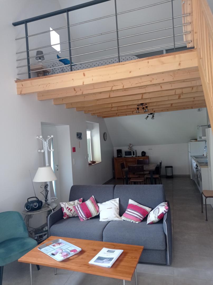 Cet appartement situé au 1er étage d'une bâtisse entièrement rénovée (un autre appartement est situé au rez de chaussée) se compose d'une pièce de vie avec cuisine toute équipée, d'un coin salon avec TV, d'une chambre avec un lit double (140*190), et d'une mezzanine avec 1 lit double (140*190) salle d'eau avec douche et d'un WC indépendant. Côté extérieur, vous pourrez profiter d'une terrasse avec salon de jardin, transats et barbecue. Un spa commun est à votre disposition (50€/séjour). Parking privé sur place. Pour votre plus grand confort, les lits seront faits à votre arrivée. Possibilité d'accueillir sur demande 1 ou 2 personnes supplémentaires (canapé convertible dans le salon) Idéalement situé, vous pourrez découvrir 2 sites classés au patrimoine Mondial de l'UNESCO : la grand Saline de Salins les Bains et la Saline Royale d'Arc-et-Senans. Les amoureux des loisirs de pleine nature ne seront pas en reste : randonnées pédestres et cyclo, parapente, canoë-kayak ou encore baignade se trouvent dans un périmètre de 10 minutes en voiture. NOTE : possibilité de réserver le gîte G2511 situé au RDC pour une capacité totale de 12 personnes - présence d'un bâtiment de stockage en face du gîte