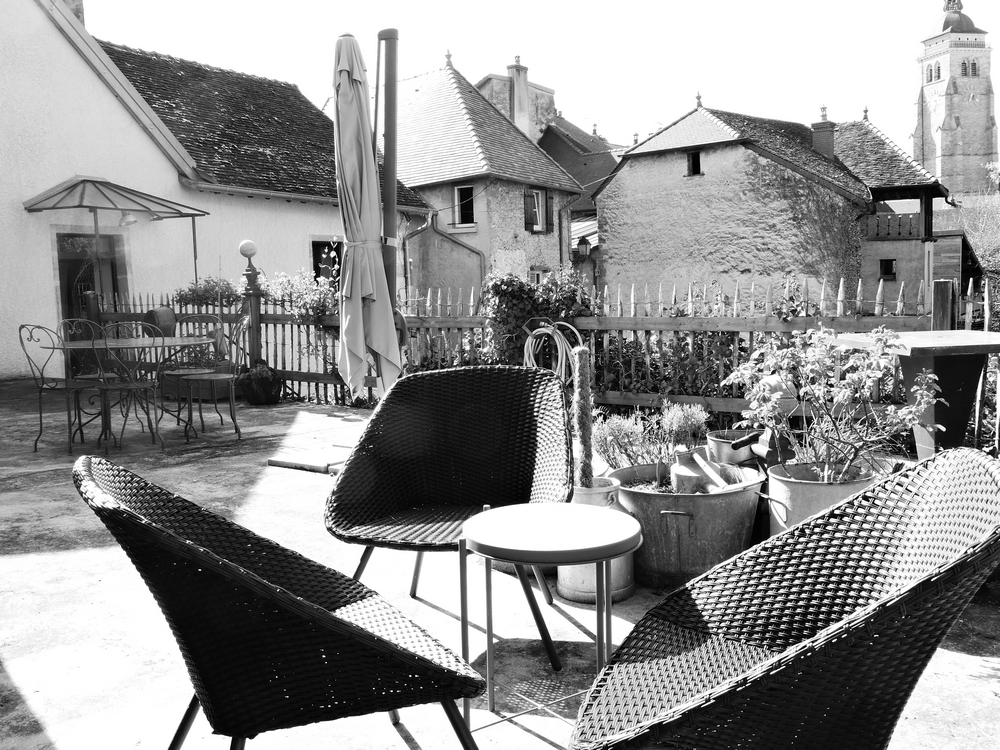 Venez découvrir un endroit magnifique pour profiter de votre séjour dans cette maison de l'ancien faubourg Arboisien, entièrement rénovée, située au bord de la rivière, au cœur du quartier historique d'Arbois.