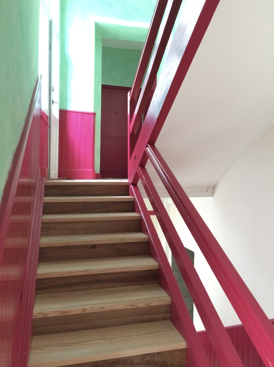Second étage, immeuble de centre-ville, appartement de 55 m2.