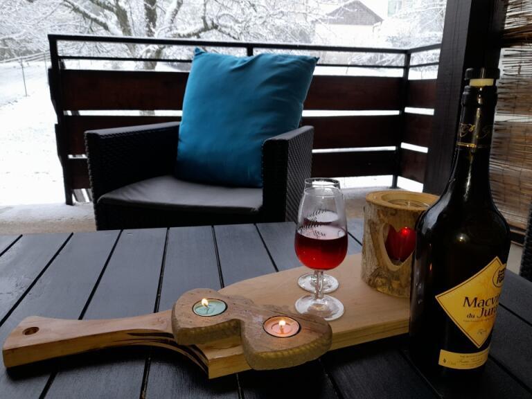 Notre avis: En plein coeur du vignoble jurassien, vous profiterez du calme de la terrasse couverte donnant sur un environnement verdoyant.