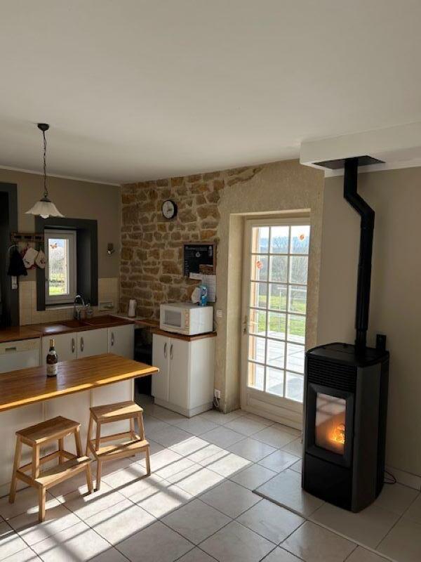 Ferme franc comtoise datant de 1850 avec grand jardin arboré clos et terrasse exposée plein sud offrant une jolie vue dégagée sur le jardin et au loin le premier plateau jurassien. Grande pièce à vivre très lumineuse donnant sur la terrasse, composée de l’espace cuisine et du salon-séjour avec poêle à granulés. Salle de bain, WC indépendant, une chambre avec un lit 2 places (160 cm), une seconde chambre avec un lit 2 places (140 cm) et un lit 1 place en mezzanine. Grange attenante fermée pouvant accueillir vélos, porte vélos, etc. Salon de jardin, barbecue, balançoire, parasol. Un « barnum terrasse couverte » vous offrira un peu plus d’ombre en été ! Draps et linges de toilettes fournis, granulés fournis, chauffage central, toutes charges comprises
