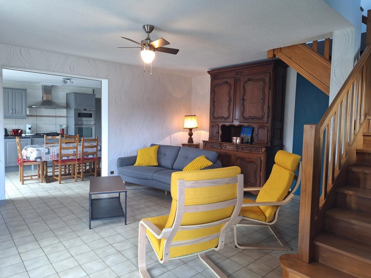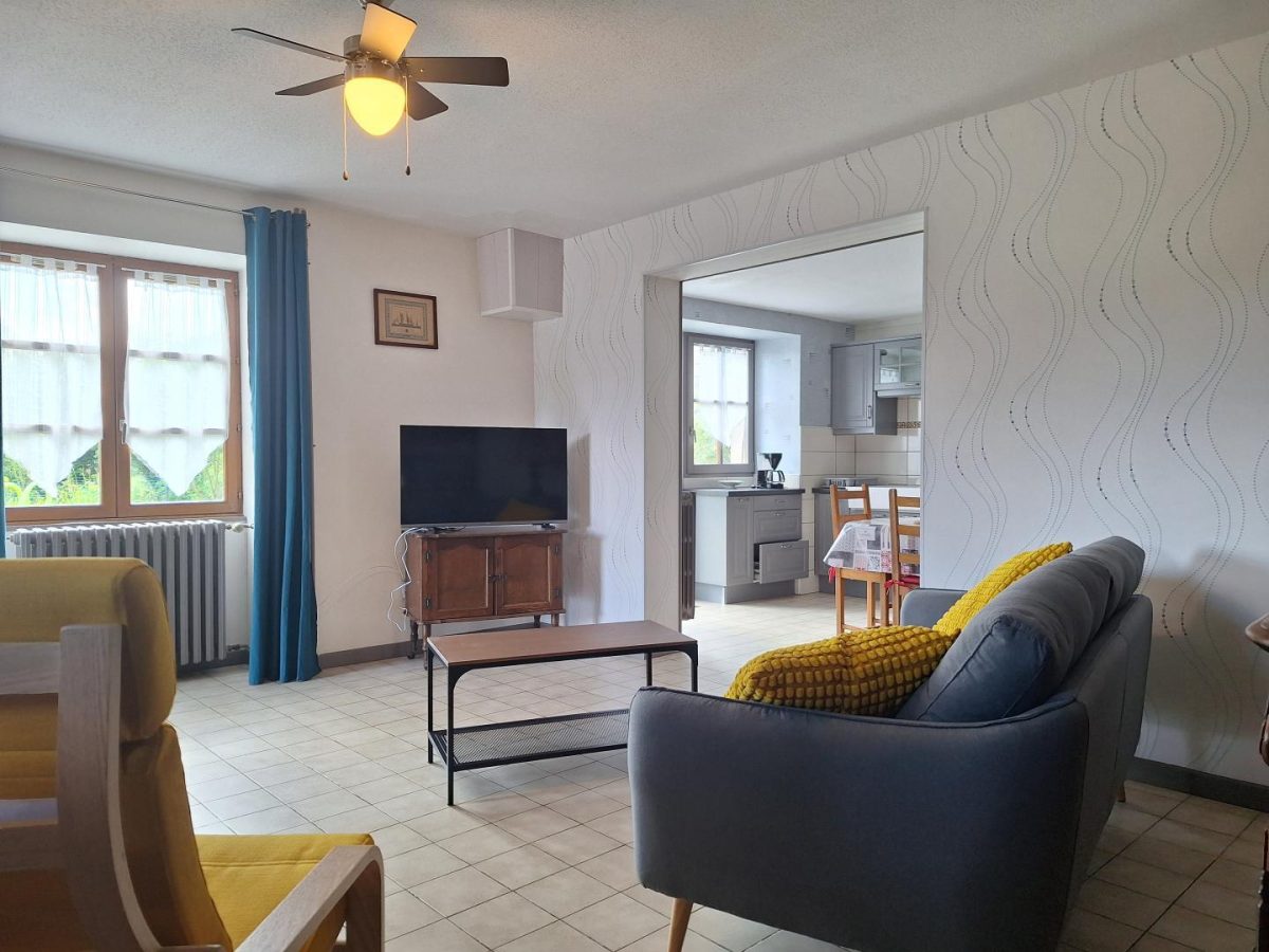 Cette maison mitoyenne, située dans un petit village au calme, se compose au RDC d'une cuisine toute équipée, d'une salle d'eau avec douche, d'un salon avec canapé et TV. A l'étage, 2 chambres : l'une avec 1 lit double (160*190) avec balcon privatif et la 2ème avec 1 lit double (140*190) et un lit simple (90*190), une salle de bain avec baignoire. Pour votre plus grand confort, les lits seront faits à votre arrivée. Côté extérieur, une terrasse avec salon de jardin, store banne, barbecue, transatset un trampoline vous permettront de profiter des beaux jours. Remise pour les vélos. Idéalement situé pour découvrir Arbois, capitale des vins du Jura et Poligny, capitale du Comté, vous pourrez également partir à la découverte de Chateau-Chalon et Baume les Messieurs en 20 mns et la région des lacs est accessible en une trentaine de minutes (cascade du Hérisson, lac de Clairvaux...)