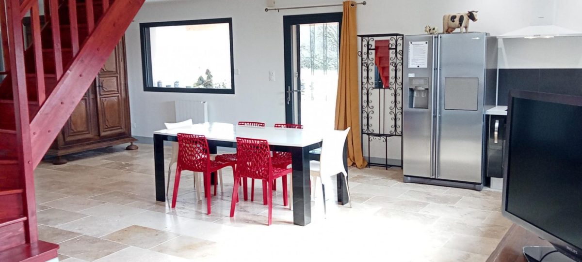 Venez découvrir cette jolie maison indépendante, idéalement située entre le vignoble jurassien et la région des Lacs, à proximité des sites touristiques tels que Château-Chalon, Baume les Messieurs ou encore les cascades du Hérisson. Au rez-de-chaussée, vaste pièce à vivre avec cuisine entièrement équipée, salle à manger et espace salon avec canapé et télévision écran plat. Une chambre équipée d'un lit de 160x200. Salle d'eau avec douche à l'italienne, wc indépendants. Buanderie avec lave linges et rangements. A l'étage, deux chambres, l'une avec un lit de 140 et l'autre avec deux lit de 90. Wc indépendants. A l'extérieur, cour et belle terrasse abritée, avec salon de jardin et barbecue. Local fermé pour vélos. Réservez vite votre séjour !