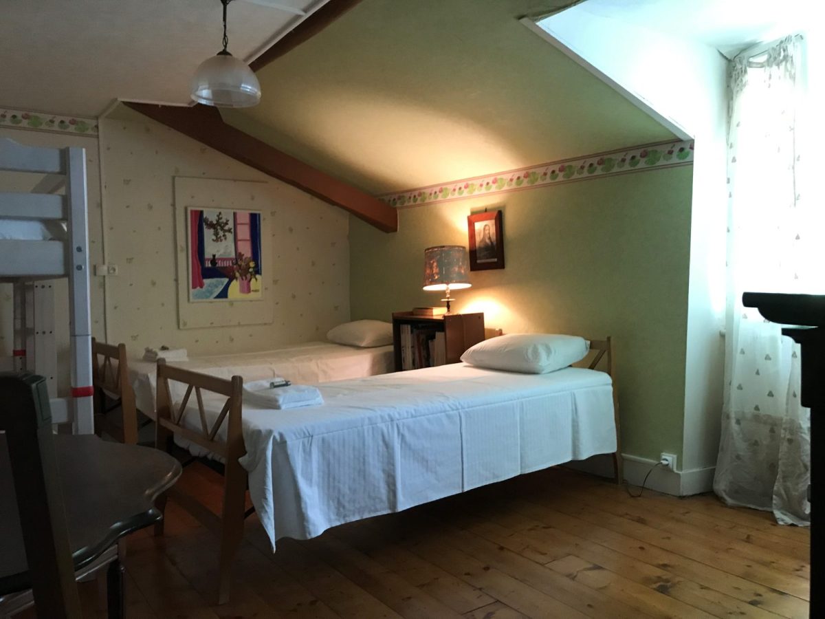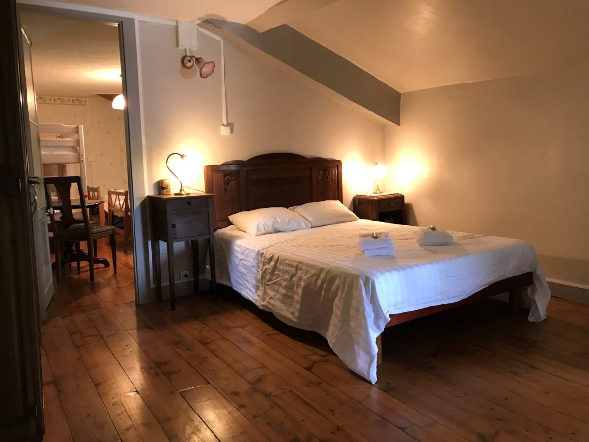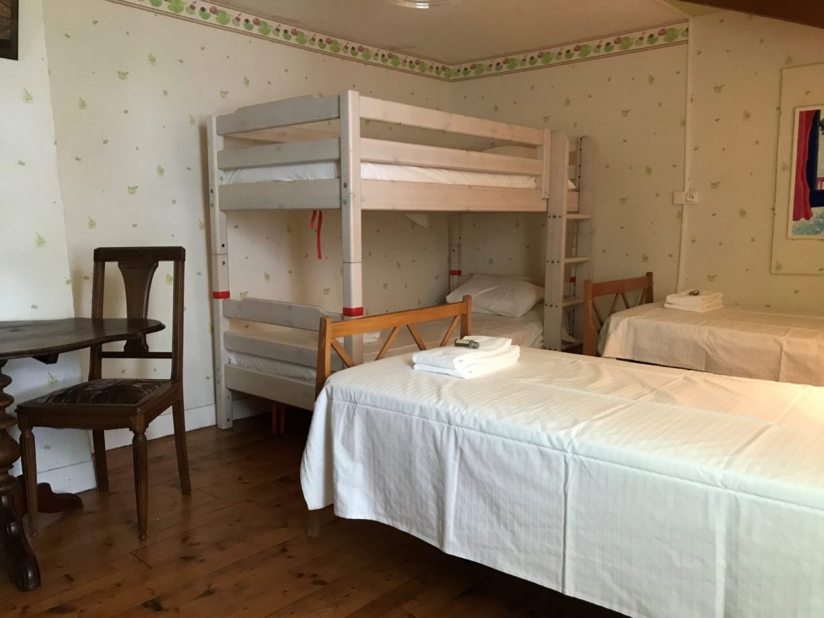 Quatre chambres : trois chambres avec lits doubles et un dortoir avec quatre lits simples) en enfilade, sur deux étages, avec deux salles de bains; soit