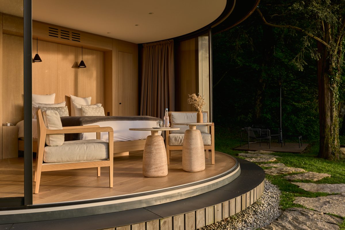 Une chambre insolite proposée par l'Hôtel-Restaurant Maison Zugno classé 5 étoiles. Profitez d’une vue panoramique sur la reculée de Poligny.