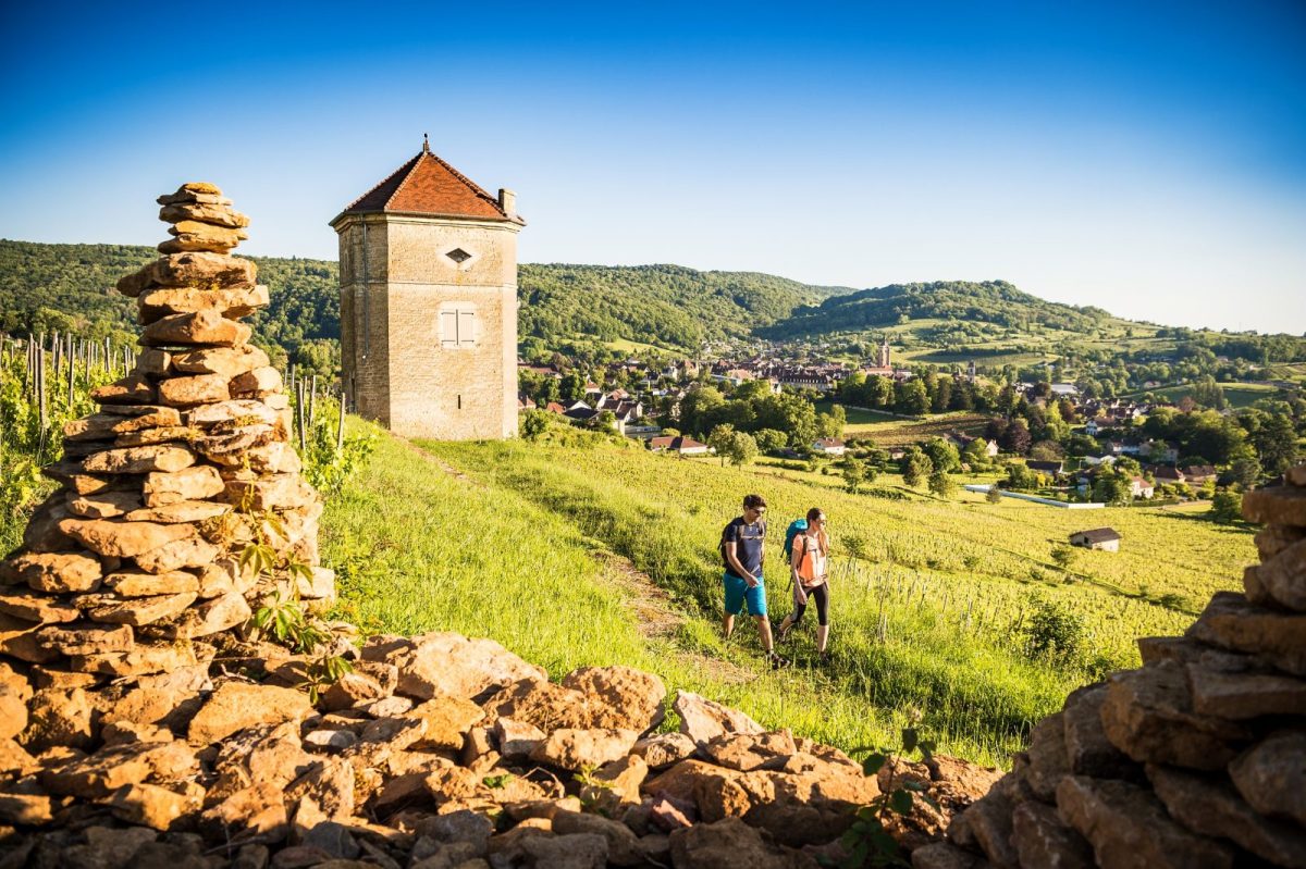Arbois, capitale des vins du jura, fut la première aoc française en 1936, couronnant une tradition viticole séculaire. C’est une ville où l’art de vivre prend tout son sens et où l’on se plaît à s’attarder, portés par la douceur de vivre locale. C’est aussi le pays de louis pasteur, considéré comme le père de l’œnologie. cette balade vous emmène sur le sentier des vignes, à la découverte des terroirs des corvées et de curon. Ces coteaux pentus aux excellents vins illustrent ce qu'est l'essence du terroir arboisien : ensoleillement et altitude idéale, sols caillouteux posés sur des marnes grises profondes, en contrebas d’une corniche calcaire.