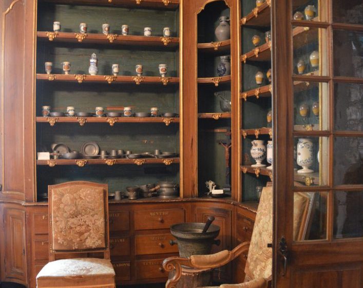 Elle permettait de traiter la douleur dans un premier temps. Au fil des siècles, la thériaque conserva sa réputation de panacée, le remède universel. L’huile de petits chiens, qui fut ramené par Ambroise Paré d’Italie, est aussi une curiosité à découvrir à l’intérieur de cette apothicairerie.
