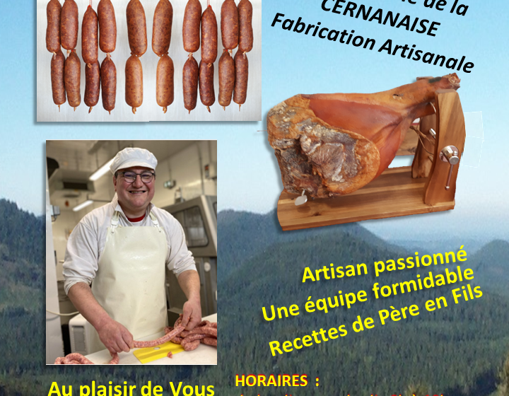 Cernanaise, jambon cru, jambon à l'os, saucisses, saucissons ... Découvrez le secret du goût unique de nos produits de salaison artisanale!